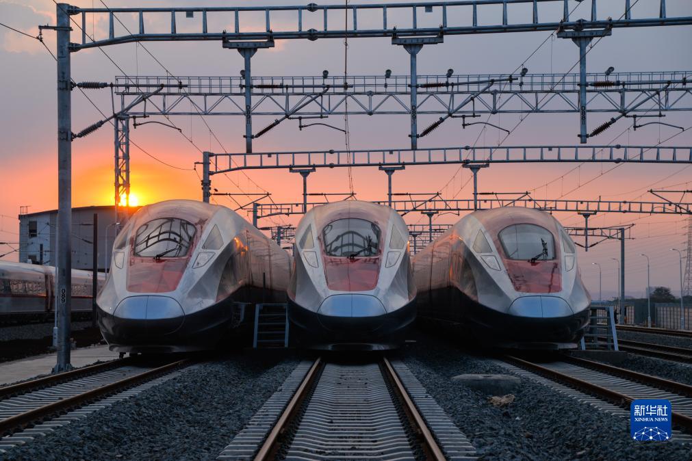 8月17日,在印度尼西亚万隆,雅万高铁高速动车组停靠在雅万高铁德卡鲁尔动车所附近。