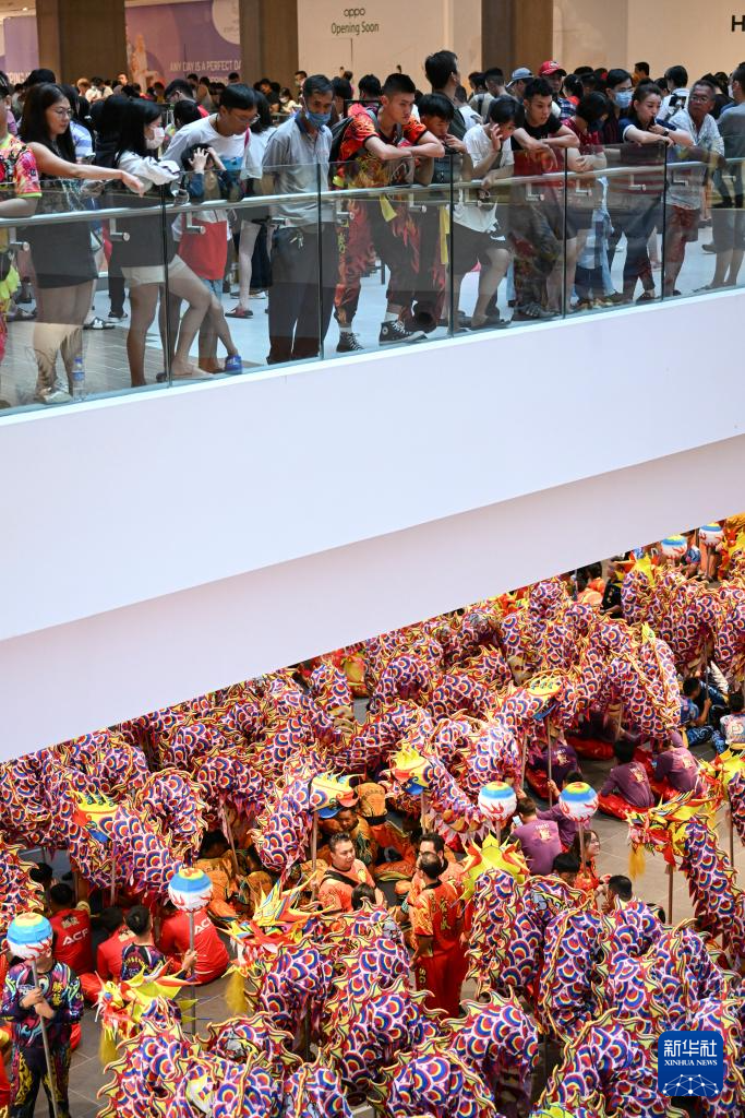 1月7日,人们在马来西亚雪兰莪州巴生的一家购物中心观看舞龙表演。