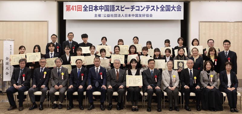 1月7日,第41届全日本汉语演讲比赛合影。(公益社团法人日本中国友好协会供图)