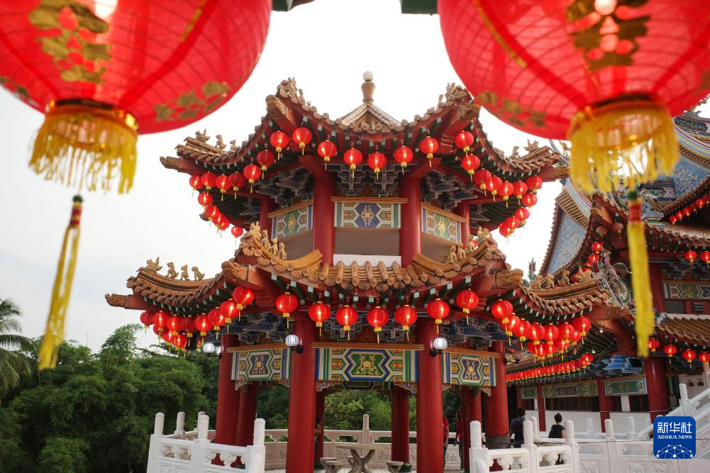近日,马来西亚吉隆坡天后宫每晚点亮几千只红灯笼,迎接农历甲辰龙年的到来。