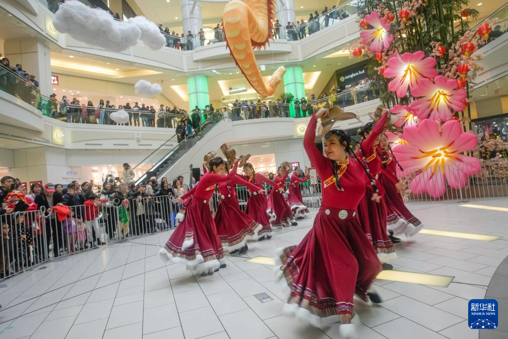 2月24日,在加拿大伯纳比市,人们在购物中心观看元宵节庆祝活动表演。