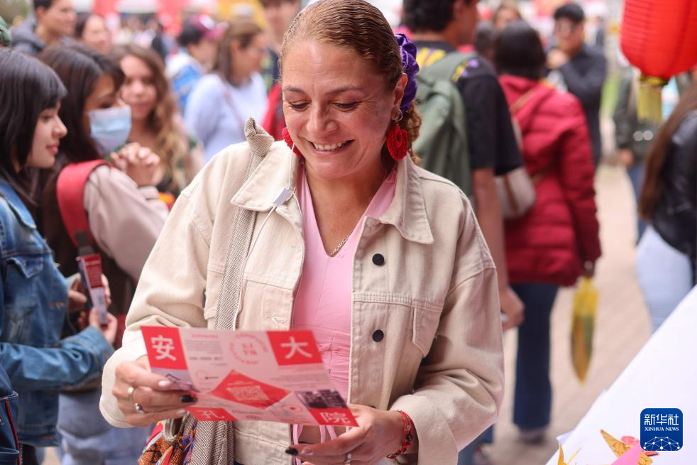 2月24日,在哥伦比亚首都波哥大,一名女子看着写有自己中文名字的纸张。