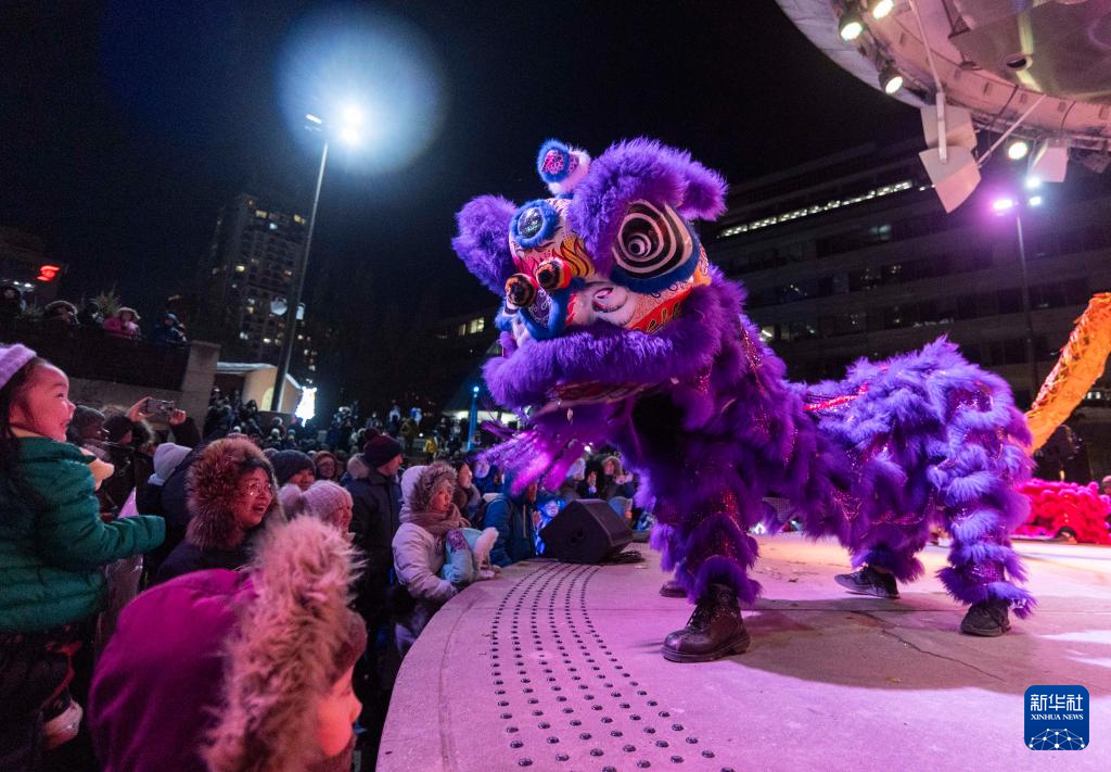 2月24日,人们在加拿大多伦多元宵节庆祝活动上观看舞狮表演。