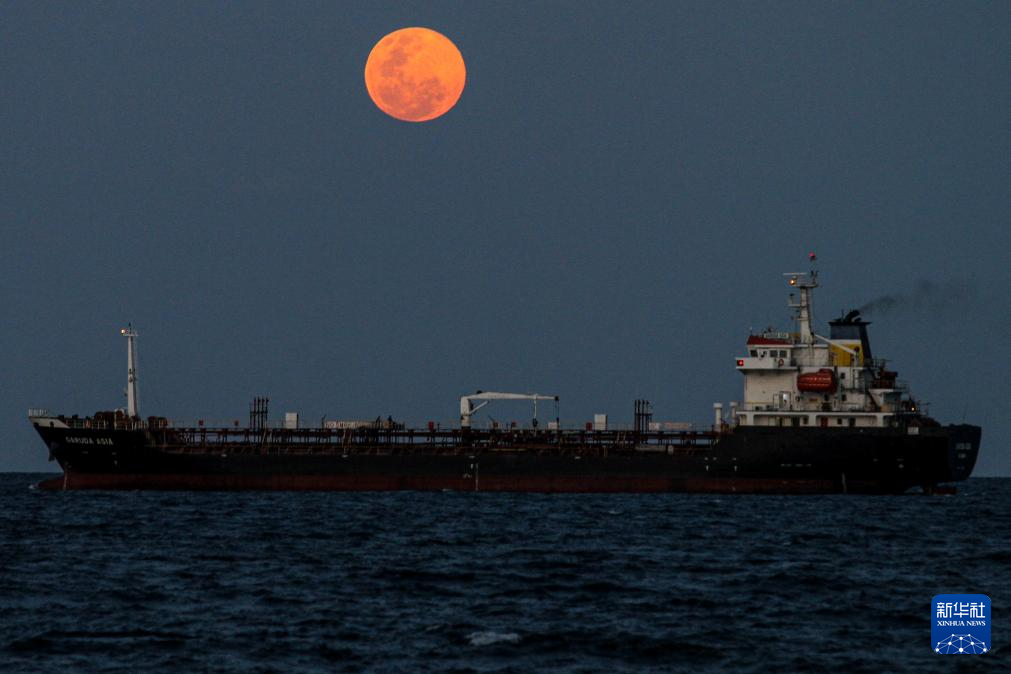 2月24日,在印度尼西亚亚齐省司马威的海岸附近,一艘轮船在月光下行驶。