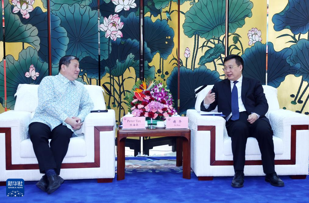 3月14日,新华社社长傅华在北京会见新加坡驻华大使陈海泉。新华社记者鞠鹏摄