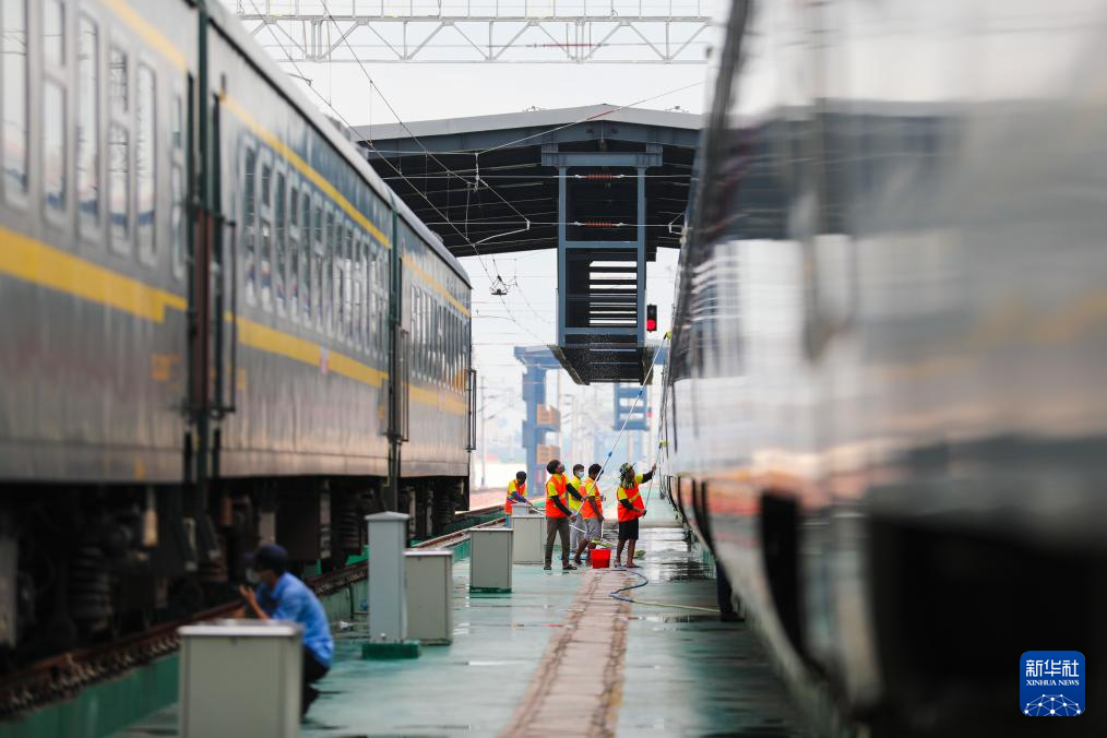 4月2日至3日,中老铁路老挝万象客整所工作人员对动车组列车进行检修、清洗和空调滤网“吹灰”等作业,为迎接老挝新年期间的客流高峰做好准备。