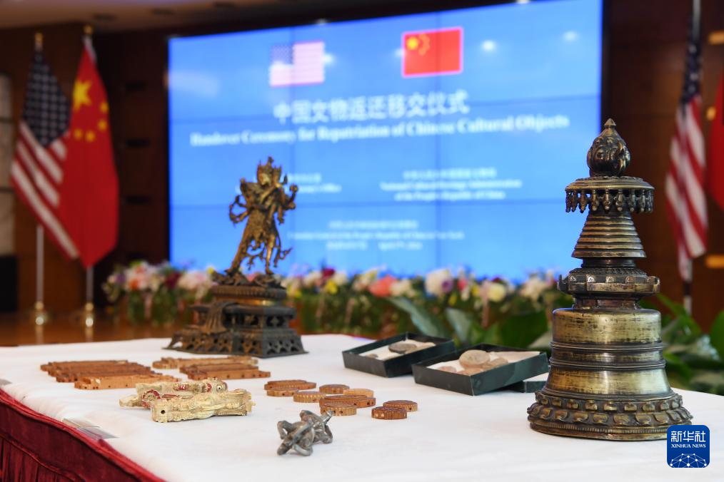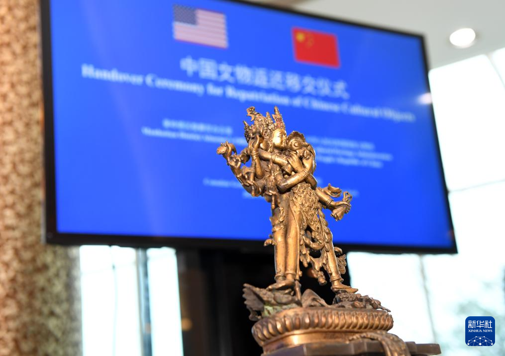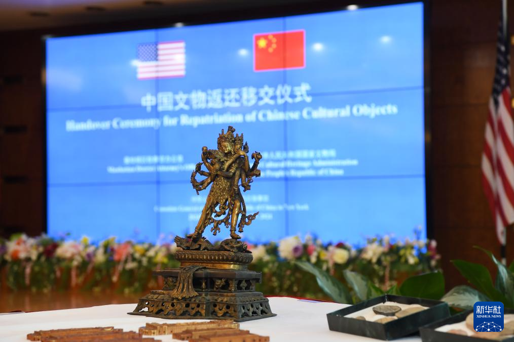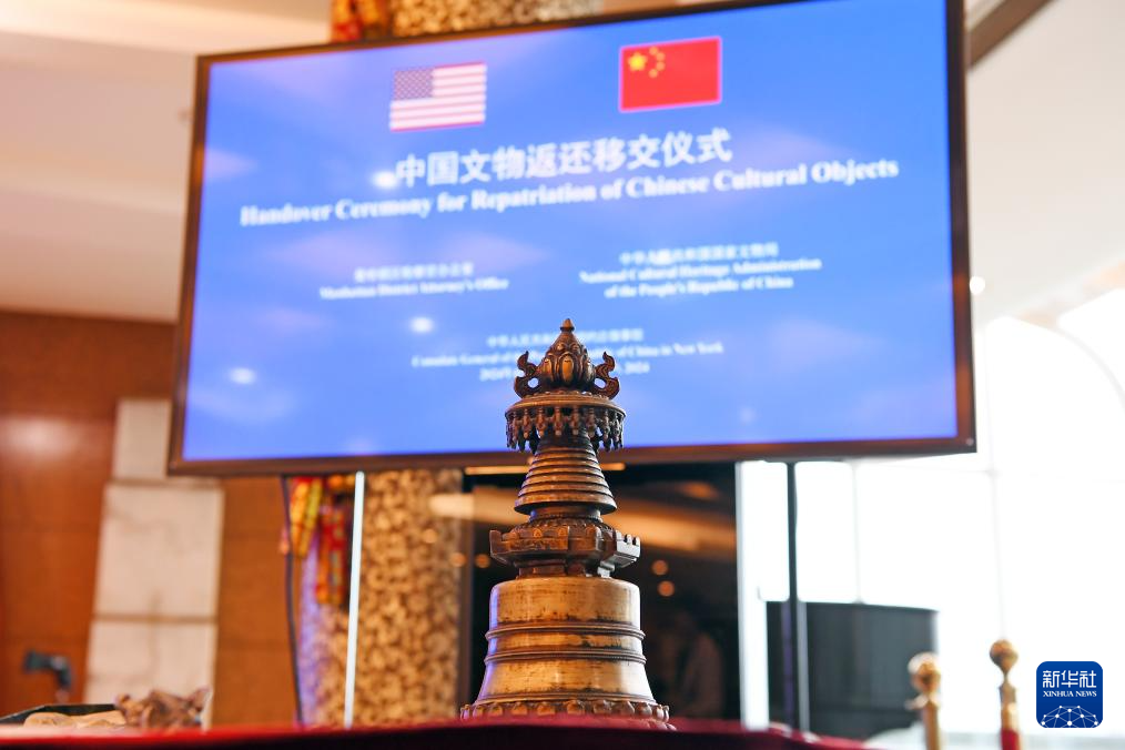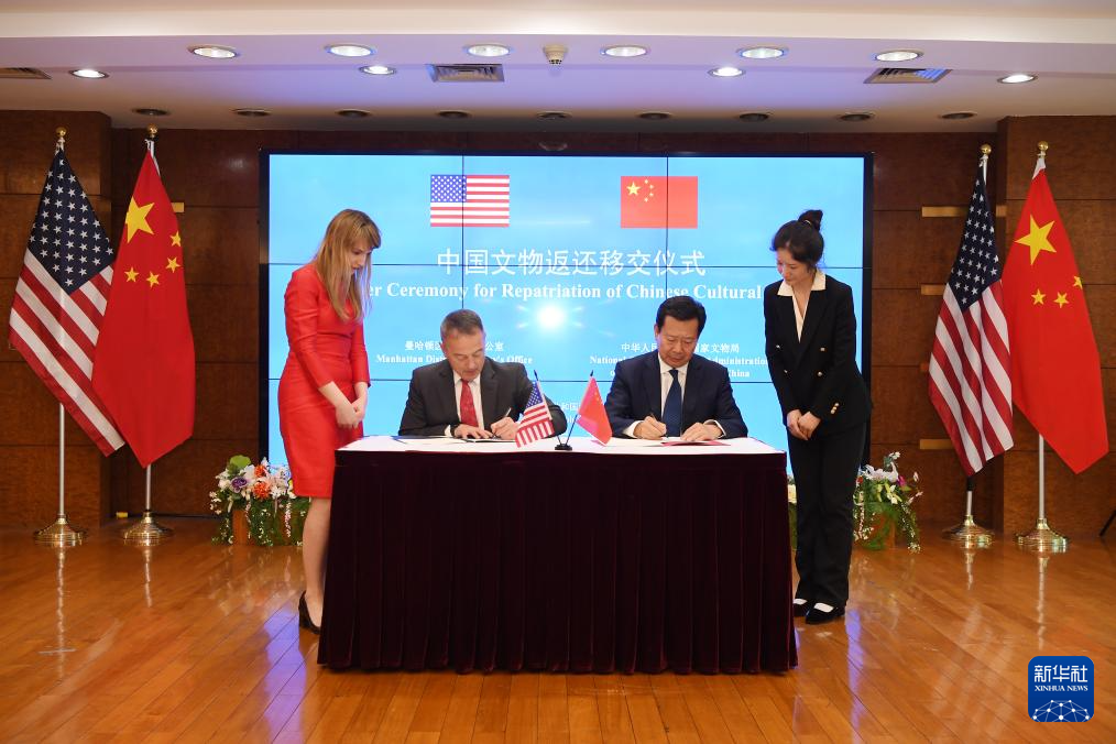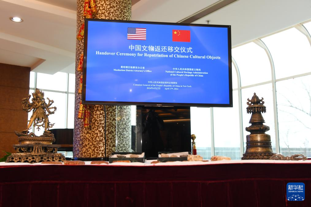 4月17日,在美国纽约中国驻纽约总领馆,中美双方代表出席中国流失文物艺术品返还移交仪式。新华社记者 李睿 摄