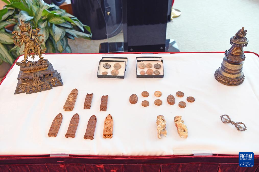 4月17日,在美国纽约中国驻纽约总领馆,工作人员点交中国流失文物艺术品。新华社记者 李睿 摄