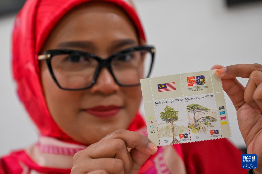 中国邮政与马来西亚邮政共同推出的联合纪念邮票31日起在马来西亚发售,以纪念中马建交50周年。该纪念邮票以中国的迎客松和马来西亚的国树印茄树为元素,象征着两国的牢固关系和深厚友情。