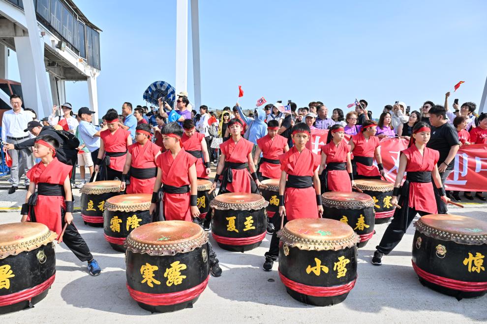 这是5月2日在马来西亚雪兰莪州巴生港拍摄的二十四节令鼓表演。新华社记者程一恒摄