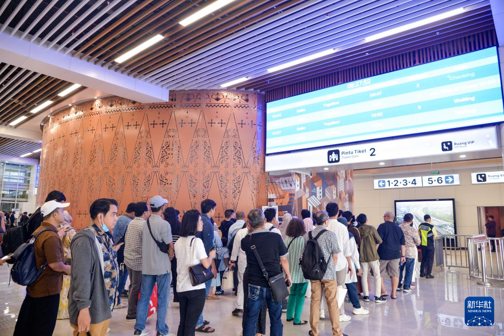 6月17日,在印度尼西亚雅加达哈利姆站候车大厅,乘客排队等候刷票进站。