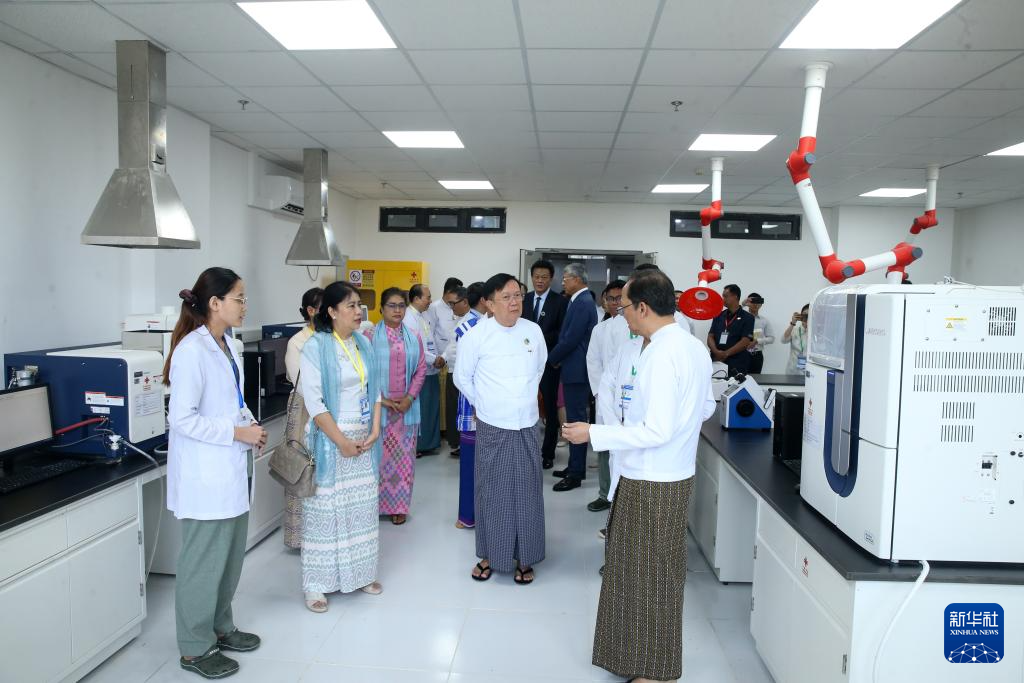 6月13日,嘉宾在缅甸内比都参观中国政府援助缅甸国家疾控中心和医护培训中心。新华社发(苗觉梭摄)