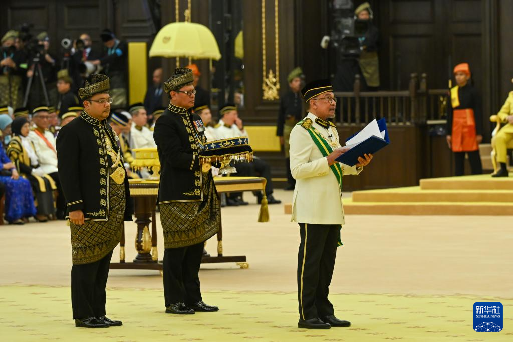 7月20日,马来西亚总理安瓦尔(右)在吉隆坡出席最高元首登基仪式。新华社发(马来西亚新闻局供图)