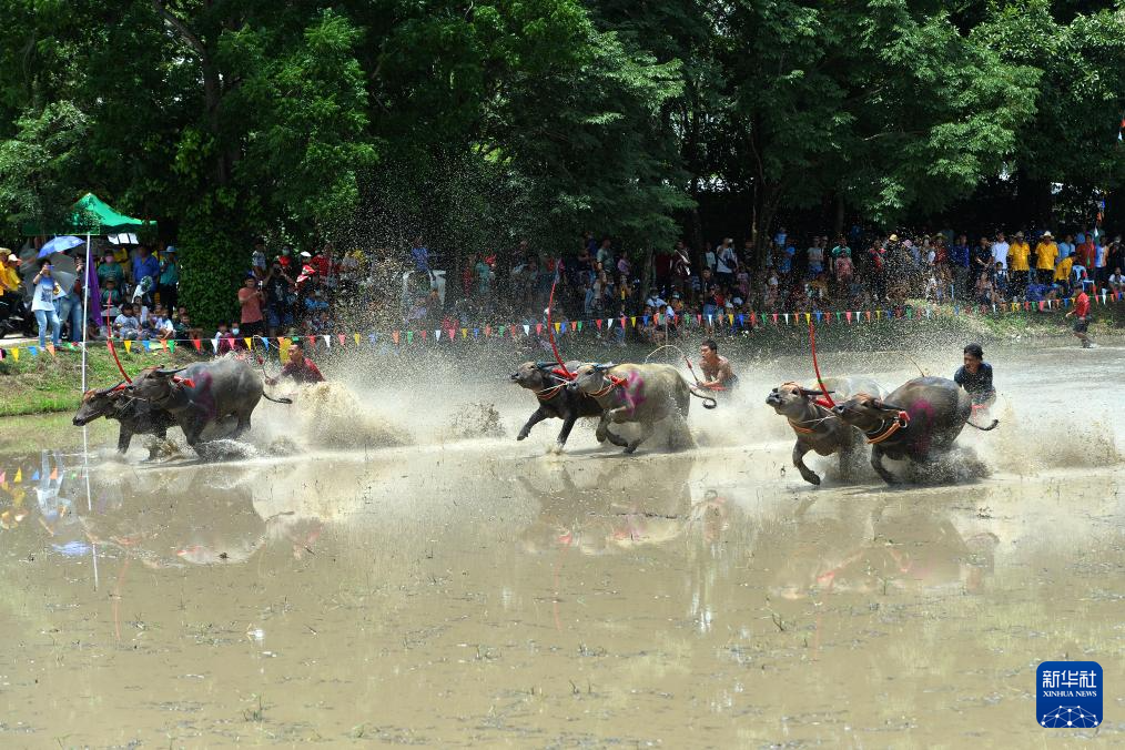 春武里府当日举行赛牛活动,以庆祝当地水稻播种季节开始。