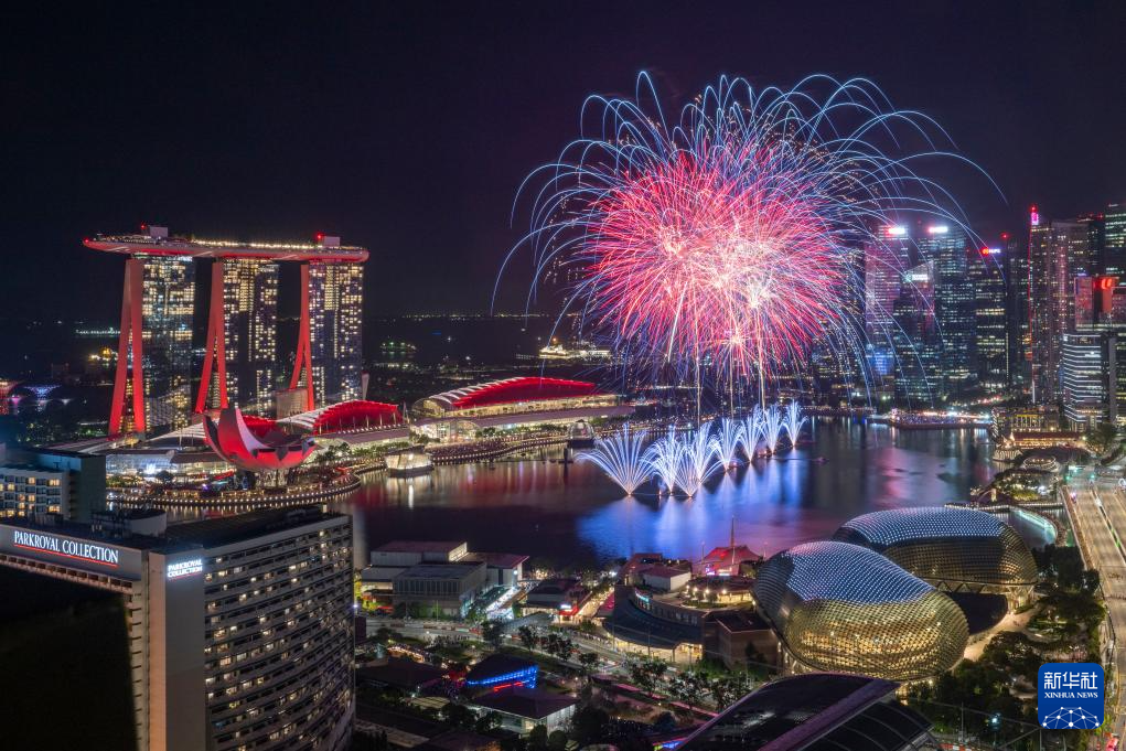 新加坡9日举行国庆庆典,庆祝独立59周年。