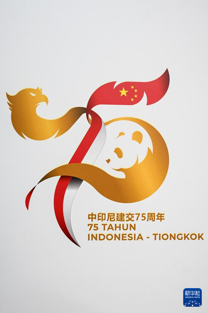这是1月7日在印度尼西亚雅加达拍摄的中印尼建交75周年官方纪念LOGO。新华社发(阿贡摄)