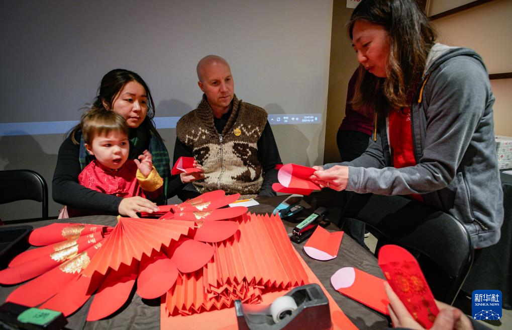 1月18日,人们在加拿大温哥华举行的中国春节文化体验活动上学习制作春节装饰品。