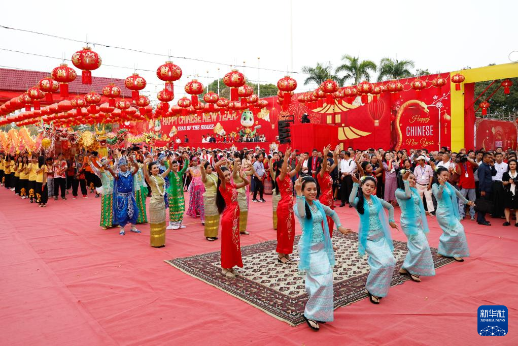 1月25日,演员在缅甸仰光举行的新春庆祝活动上表演舞蹈。