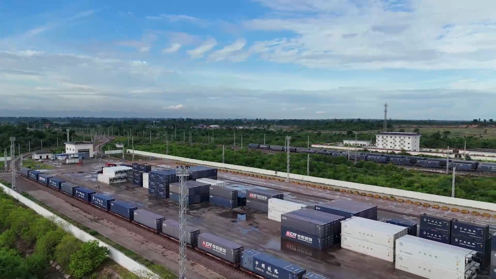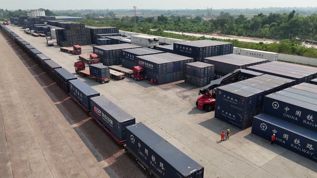 在中老铁路万象南站换装场,一派繁忙而有序的景象映入眼帘。满载泰国榴莲、龙眼等货物的集装箱被稳稳吊装上开往中国的中老铁路“澜湄快线”列车,装有中国啤酒、药膏等货物的集装箱则启程前往泰国。