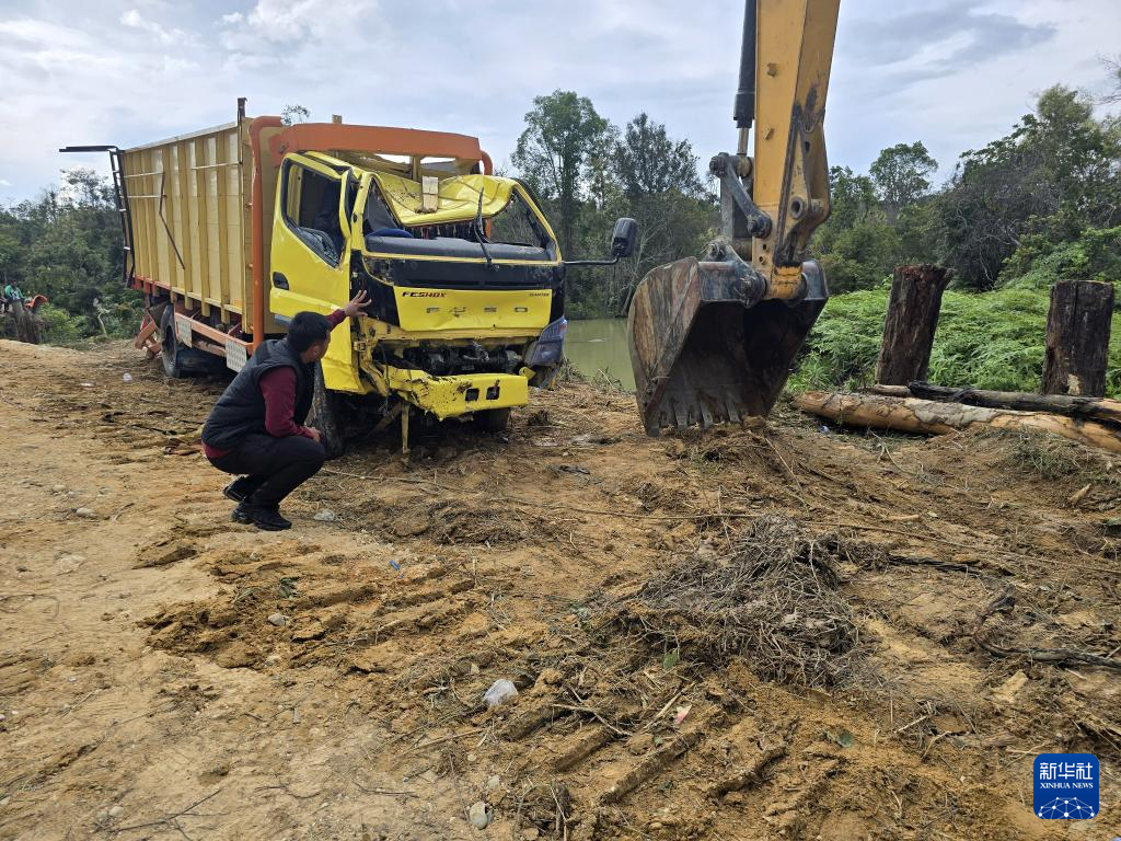 这是2月24日在印度尼西亚廖内省珀拉拉万县拍摄的打捞出的事发货车。