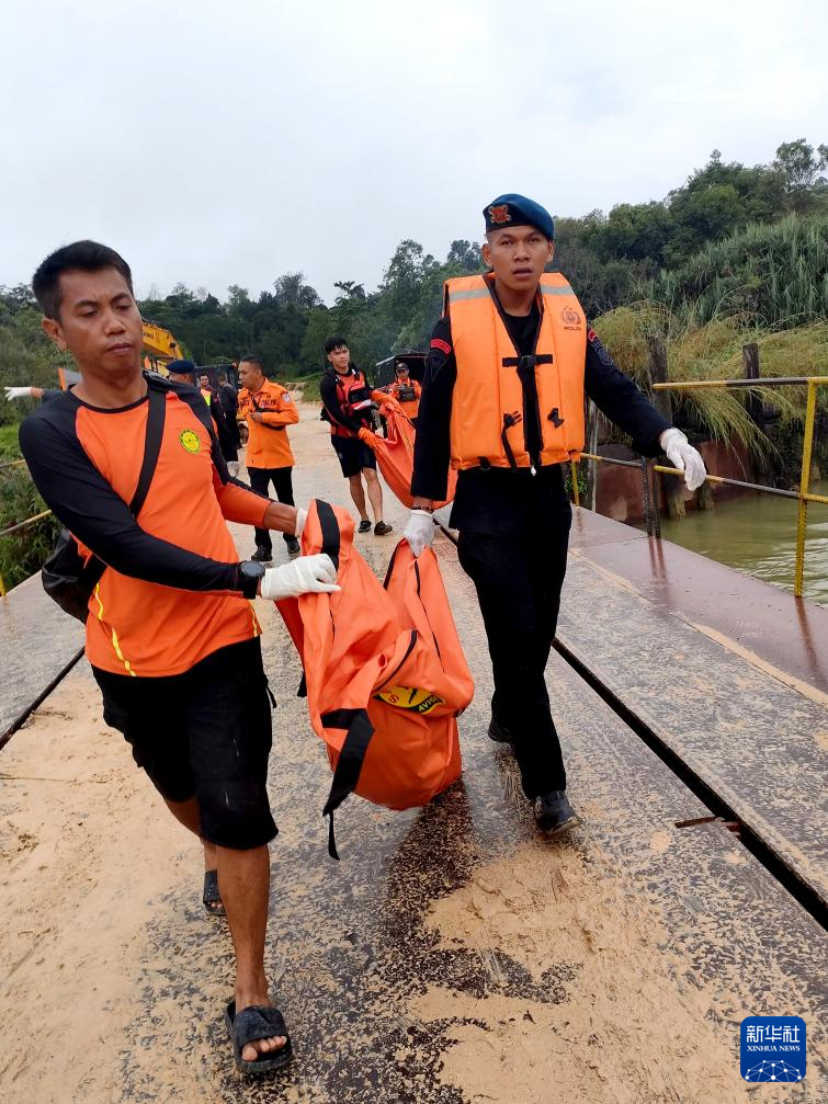 2月24日,在印度尼西亚廖内省珀拉拉万县,搜救人员转移遇难者遗体。