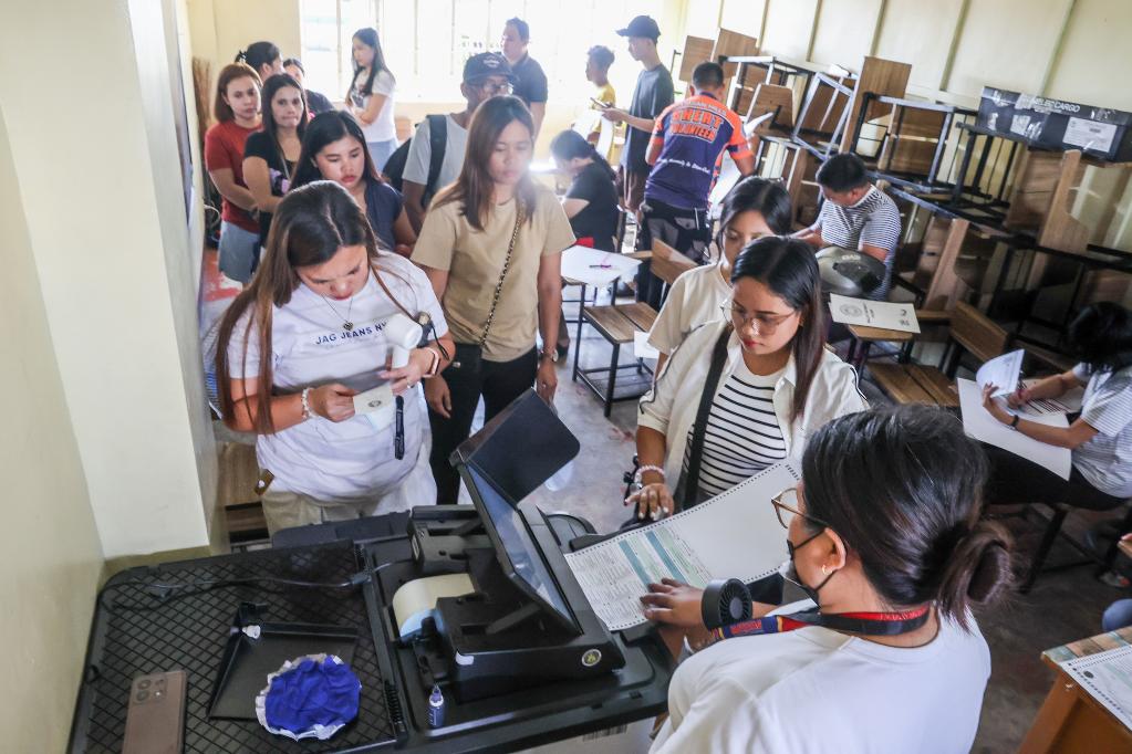 5月12日,在菲律宾奎松市,选民在投票站内参加投票。新华社发(乌马利摄)