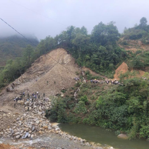 这是5月16日在越南北部莱州省封土县拍摄的山体滑坡现场。 新华社/越通社