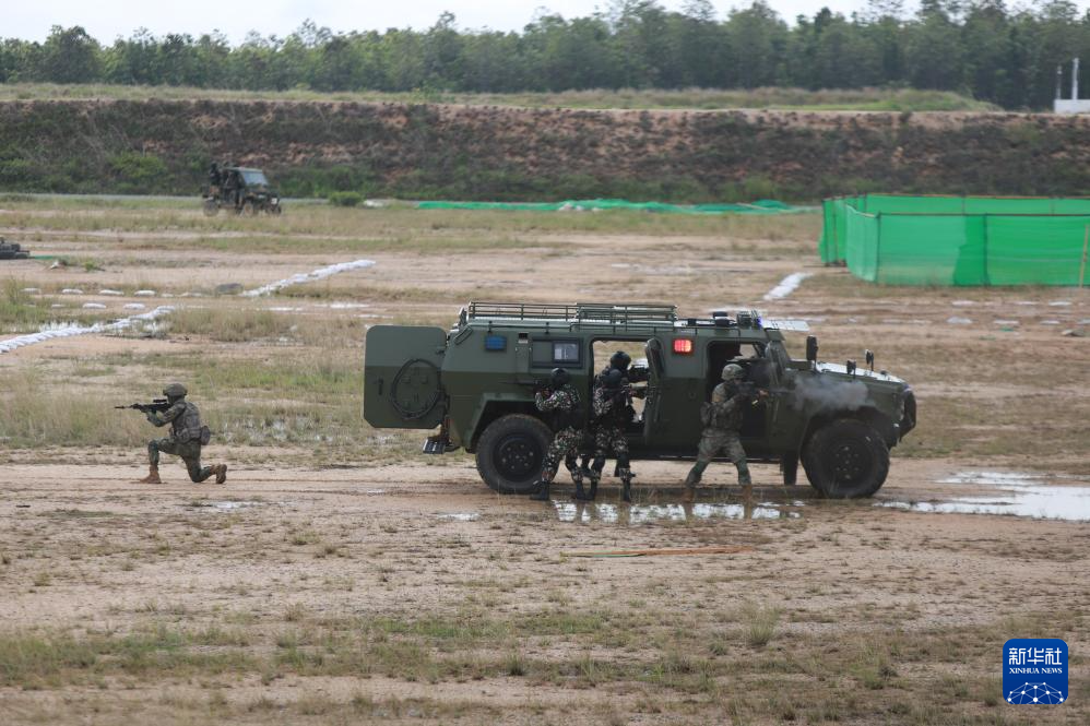 陆空方向实兵实弹演练以“恐怖分子”袭击某中柬合资企业,挟持“人质”位街区酒店,依托周边建筑群进行抵抗为背景,突出城市反恐,聚焦解救人质和围歼清剿,采取场地位移、情况预置、连贯实施方式,区分联合封控、突击营救、追逃捕歼、全面控局等4个阶段,组织实施多维侦察、机降控守、立体突击、营救人质、紧急救治、肃清残敌等24个战术行动。演练编设联合导演部、联合指挥部,中柬参演部队统一编成联合任务部队。