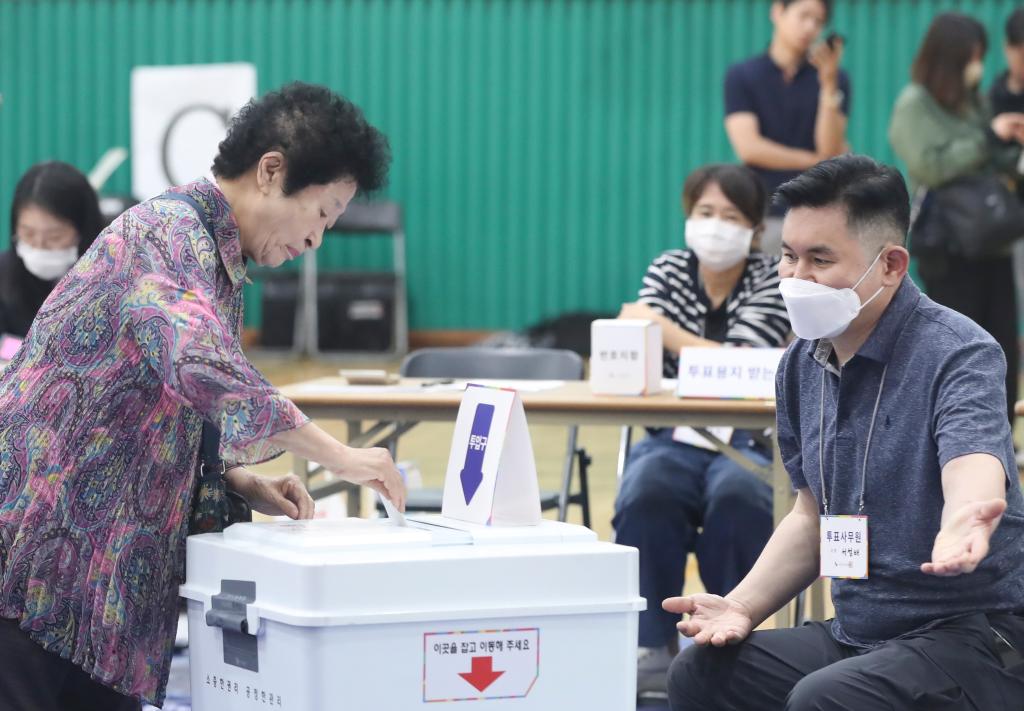 6月3日,韩国选民在首尔一处投票站投票。新华社记者姚琪琳摄