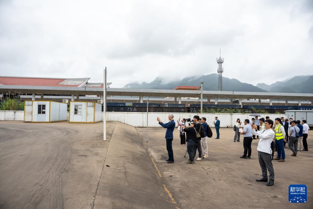 5月30日,联合国代表们参观中老铁路老挝万荣站货场。