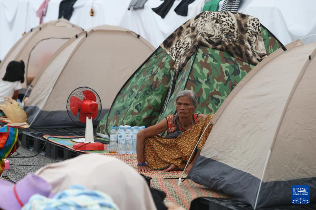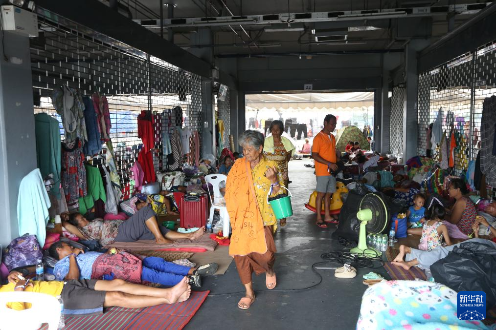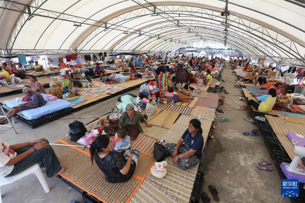 7月28日,在泰国边境省份武里南府,当地民众在一处用作避难所的体育馆休息。