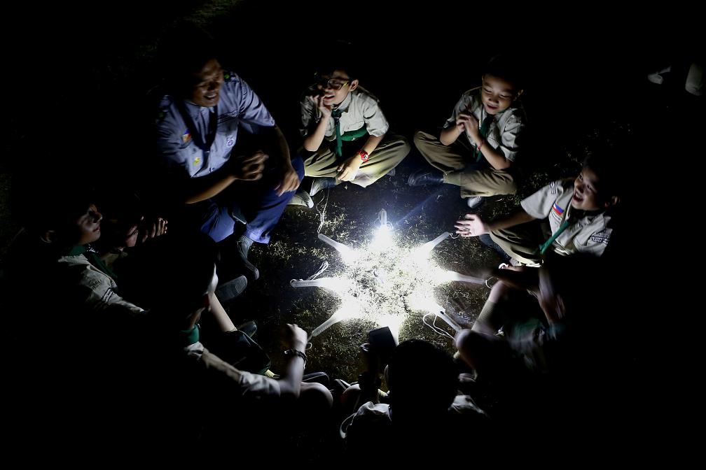 2019年3月30日,在菲律宾马卡蒂市,孩子们参与“地球一小时”活动。新华社发(鲁埃勒·乌马利摄)