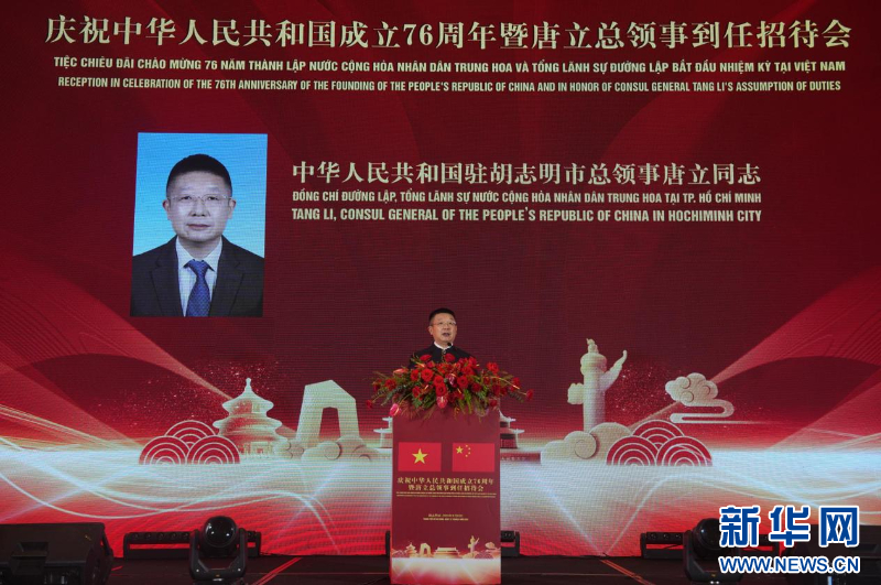 新华网河内9月16日电(记者邹学冕 胡佳丽)中国驻胡志明市总领馆近日在越南胡志明市举办庆祝中华人民共和国成立76周年招待会。中越各界人士等600余人出席。