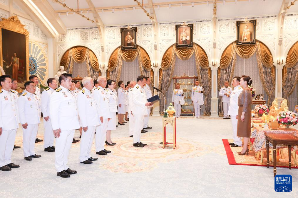 新华社曼谷9月24日电(记者陈倩慈 常天童)由阿努廷·参威拉军担任总理兼内政部长的泰国新一届内阁24日傍晚在曼谷律实宫觐见泰国国王玛哈·哇集拉隆功,在御前宣誓就职。