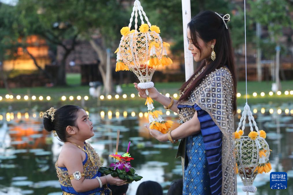 11月5日,民众在泰国大城府参加水灯节庆祝活动。