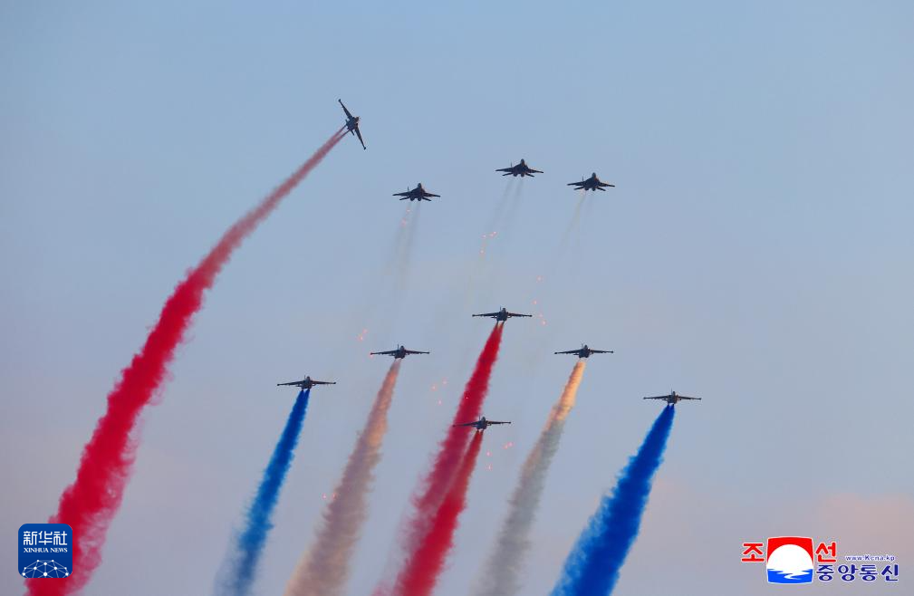 这张朝中社提供的照片显示的是朝鲜空军飞机进行飞行表演。新华社/朝中社