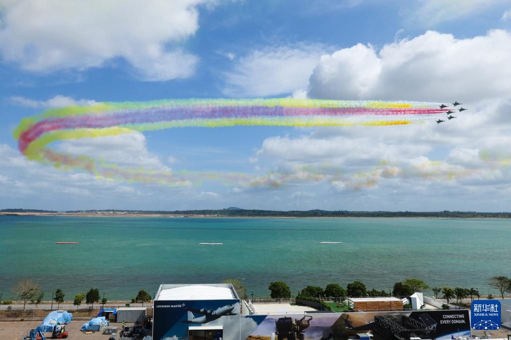 1月30日上午,中国空军八一飞行表演队在新加坡樟宜机场海面上空展开空中特技动作飞行。