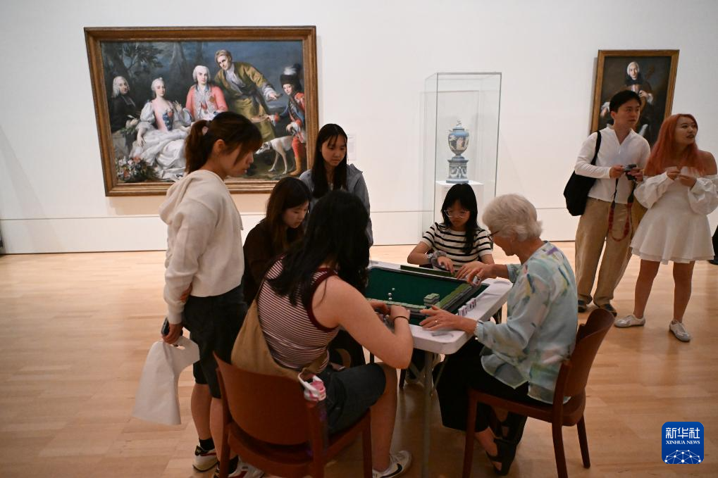 2月22日,当地民众在澳大利亚墨尔本维多利亚国家美术馆举行的春节主题活动上体验麻将。新华社记者 徐海静 摄