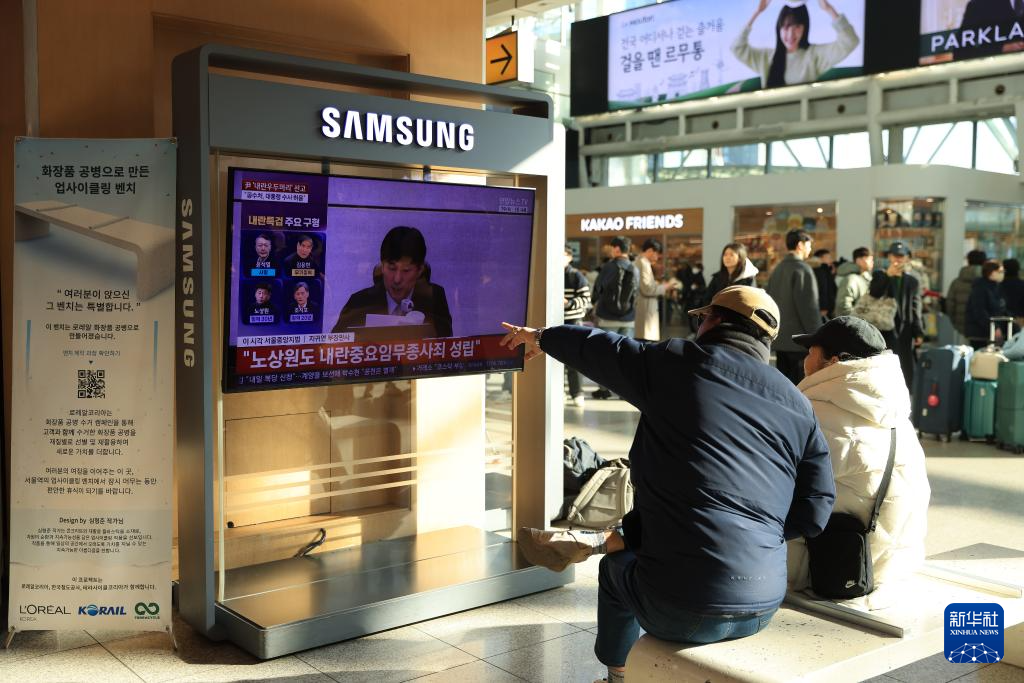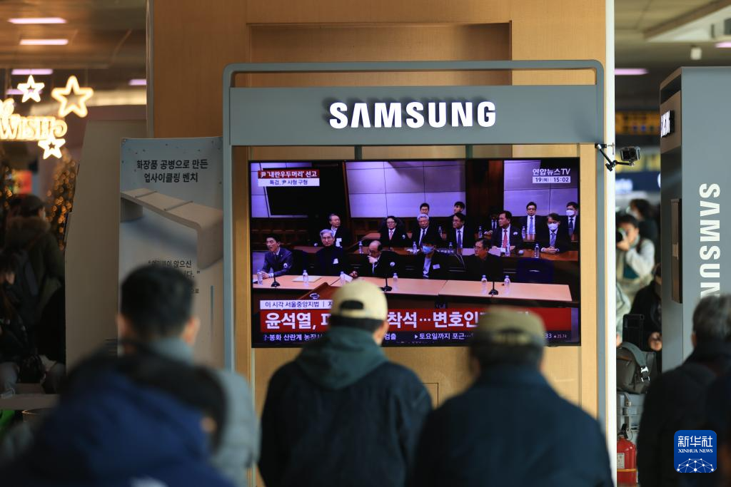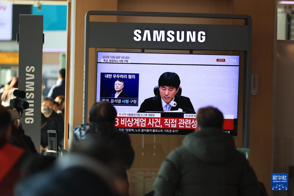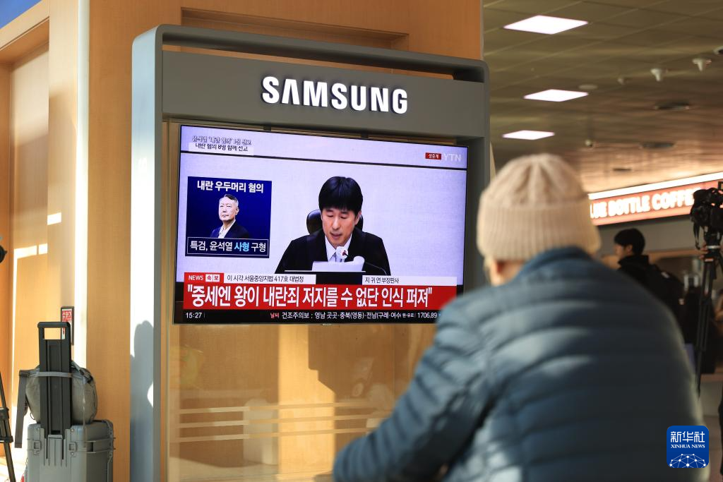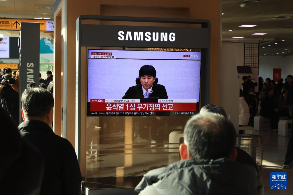 2月19日,韩国民众在首尔火车站观看尹锡悦内乱头目罪宣判的新闻。新华社发(朴晋泽摄)