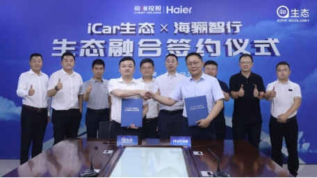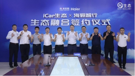 8月23日,奇瑞 iCar生态和海骊智行生态融合签约仪式在芜湖举办。双方将依托各自优势,整合双方资源,在研发制造、供应链、售后服务、联合营销、物联网等方面开展深入合作,实现共同发展。奇瑞控股副总经理、奇瑞股份副总经理、iCar生态总经理鲍思语,iCar生态营销公司总经理王磊,海尔集团董事局董事、少海汇创始人、海骊智行生态科技董事长刘斥,海骊汽车平台CEO任贤存等领导共同出席签约仪式。