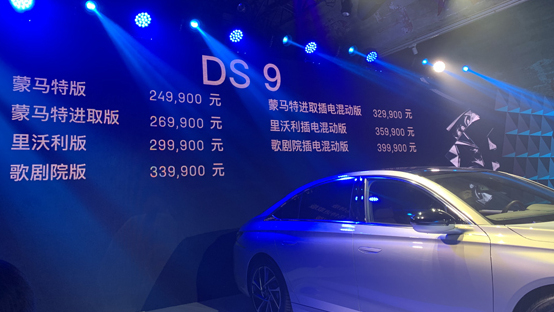 3月23日,DS 9于北京首发上市,新车共推出4款燃油版和3款插电混动版车型,售价24.99万-39.99万元。