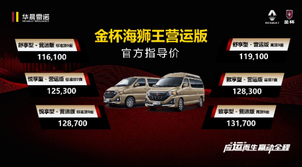 不止于对商用车市场的精细深耕,华晨雷诺金杯还致力于拓展商用车场景。在保留海狮王超大空间、强劲动力等核心优势基础上,对安全性、舒适性进行进一步优化。针对定制公交、城际班车、网约车、城乡客运及旅游客运等领域的用车需求,海狮王营运版强化商务细节,打造高品质乘用体验。新车采用隐私玻璃、螺旋簧独立后悬挂、独立后排空调、双USB插口、多向调节带扶手包覆性座椅……旨在为乘客打造一个兼具舒适、私密、高端的“移动商务舱”,无论长途还是短途,让乘客的每一次出行都不将就。