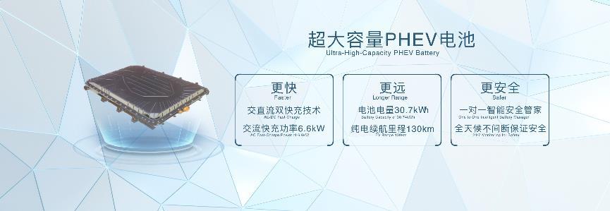 在电池方面,追求更快、更远、更安全的蓝鲸iDD,首款搭载超大容量PHEV电池产品。这款电池产品应用的交直流双快充技术覆盖了家用高效充电、出行快速补电等多场景需求,完美解决用户充电不便、充电时间长的使用痛点。30.7kWh的超大电量使蓝鲸iDD纯电续航里程达到130km。为了全方位无死角保障电池使用的安全性,蓝鲸iDD的电池包达到IP68国家最强防护等级,并配置一对一的电池智能安全管家,24小时不间断安全监控,全天候保障每一位用户的用车安全。