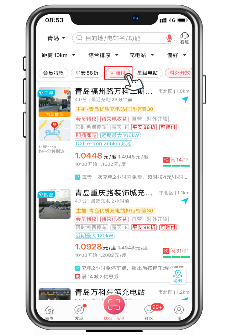 1.特来电App充电站标有“可赔付”标签的电站都在服务范围内。