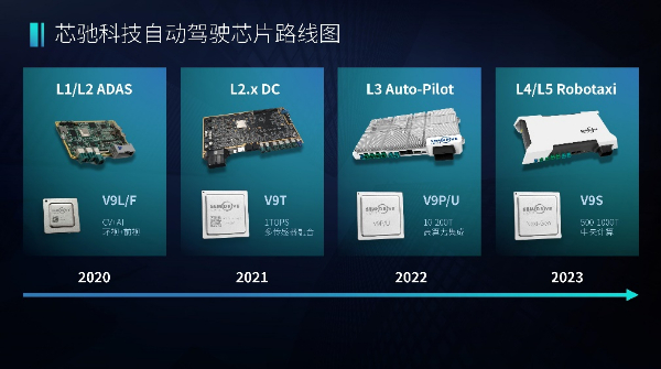 在本届世界人工智能大会上,芯驰科技还发布了在自动驾驶领域的路线图。从2019年到2020年,芯驰科技先后发布了V9L/F和V9T自动驾驶芯片,分别可支持ADAS(高级驾驶辅助系统)以及域控制器。