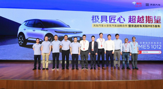 此前,双方合作定制的首款车型天际ME5 PLUS京东定制,6月17日开启京东众筹,截止6月18日,订单便突破2000台。“天际ME5集合天际汽车的造车硬实力与京东的生态软实力,解决用户的里程焦虑和充电焦虑,又能为用户带来覆盖购物、支付、娱乐等多重场景的智能体验。”京东零售生活服务事业群汽车事业部整车业务部总经理袁野表示。