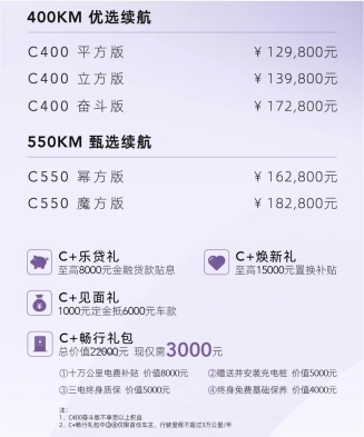 8月17日,吉利汽车集团旗下中高端纯电品牌几何汽车联合天猫汽车举办了“C+升级 实力加乘” 2021款几何C线上发布会。新车共推出NEDC400km、NEDC550km两个续航版本共4款车型,综合补贴后售价为12.98-18.28万元。