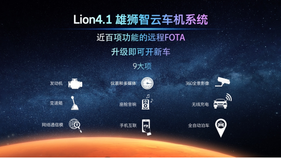 万物互联时代,星途品牌也在持续加速智能化布局,致力营造一个真正懂用户、不断学习迭代的超级智慧座舱。星途凌云400T搭载Lion雄狮智云4.1 系统,该系统配备AR增强型实景导航、“萌驾”和苹果Carplay连接、双12.3吋贯穿式高清液晶屏等配置,更支持FOTA固件升级功能,可实现动力系统、通信网络系统、信息娱乐系统、智能驾驶等九大模块、近百项功能的远程升级,实现人、车、场景的深度融合。
