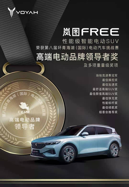 岚图FREE荣获第八届青海湖(国际)电动汽车挑战赛高端电动品牌领导者奖