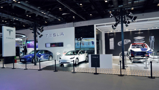 大会期间,特斯拉在国家会议中心一层的E4-11展厅,展出了Model 3、Model Y两大热门车型,特斯拉电机、白车身、超级充电桩、Powerwall;以及D1芯片、Dojo超级计算机及Tesla Bot等新技术、新场景和新运用。
